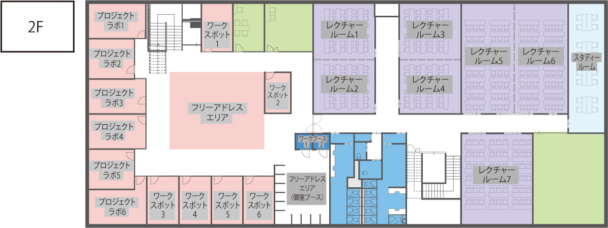 大小7つの各種会議・ミーティングスペースを有するレクチャールーム