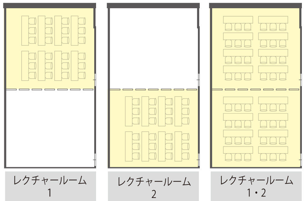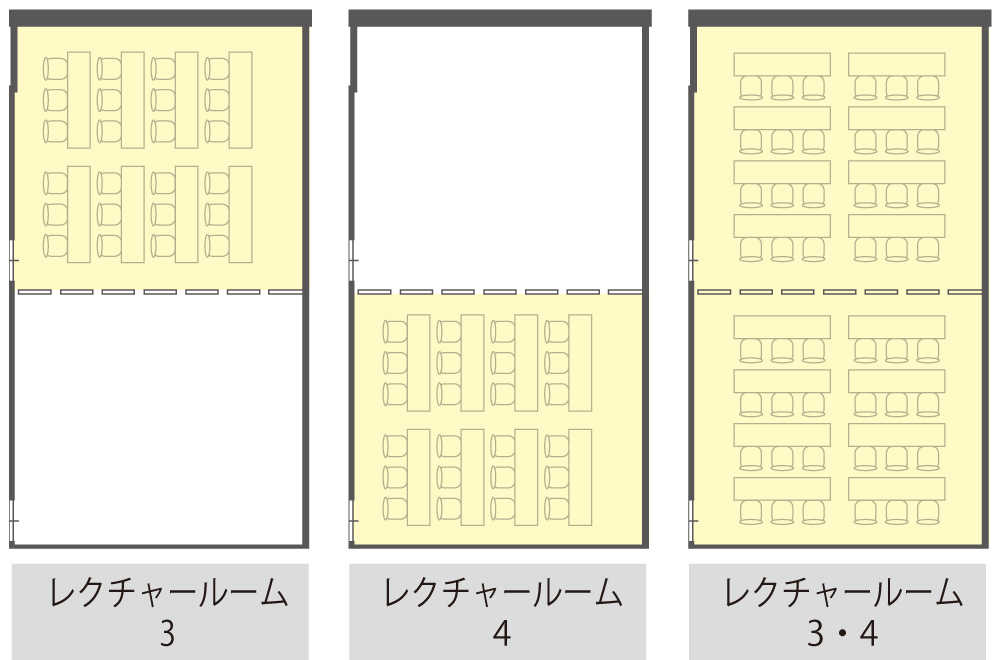 - レクチャールーム1+2・3+4 (定員48名・スクール形式)